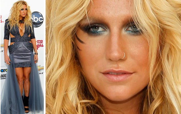 Procurando por uma make diferente e estilosa entre as makes das famosas no Billboard Music Awards 2011, achei muito interessante e diferente a make da louca desvairada Ke$ha! Olhem só: