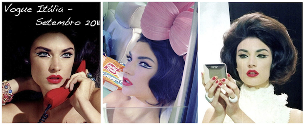 Hoje vou mostrar como se faz uma make inspirada em uma feita em um editorial de fotos para a Revista Vogue da Itália de setembro deste ano. Super retrô e marcante! Dêem uma olhada!