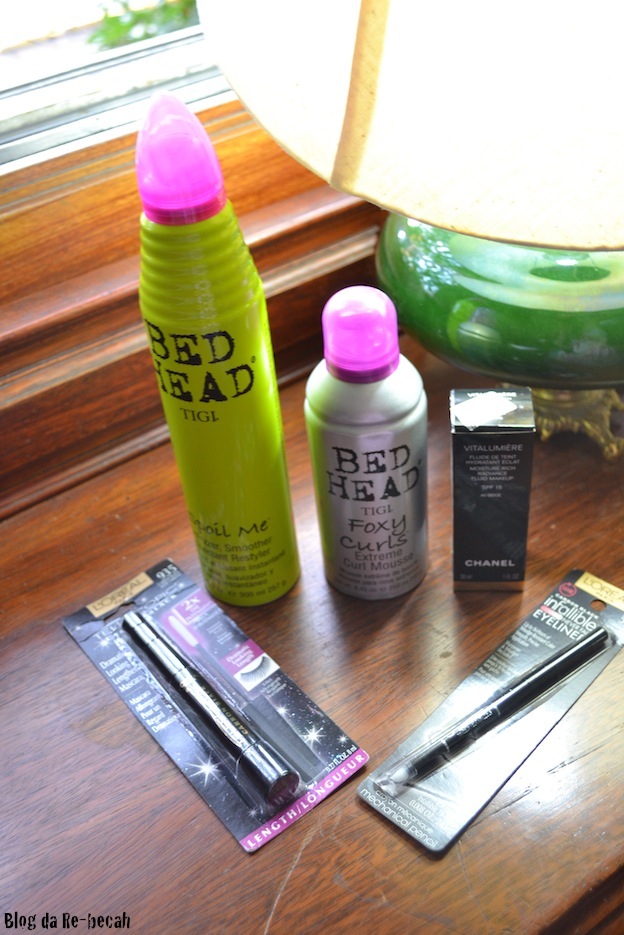 Bed Head Spoil me da Tigi ~ Bed Head Foxy Curls da Tigi ~ VitaLumière da Chanel ~ Telescopic carbon Black da L’Oréal ~ Carbon Black Infallible Never Fail EyeLiner da L’Oréal